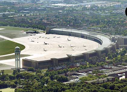 Den nærmest endeløse terminalbygningen, ble kostruert i rekordfart. Tegnet av Albert Speer, og utført av Ernst Sagebiel, omtalt som Førerens ”raske mesterbygger”. Med sine 285.000 kvadratmeter, delt opp i 49 bygninger, hangarer og 9000 kontorer, er bygget facinerende den dag i dag. Med luftbroen over Berlin ble Tempelhof igjen sentral i verdenshistorien, og på 1960-tallet landet stjerner som Marlene Dietrich og Marilyn Moroe her.