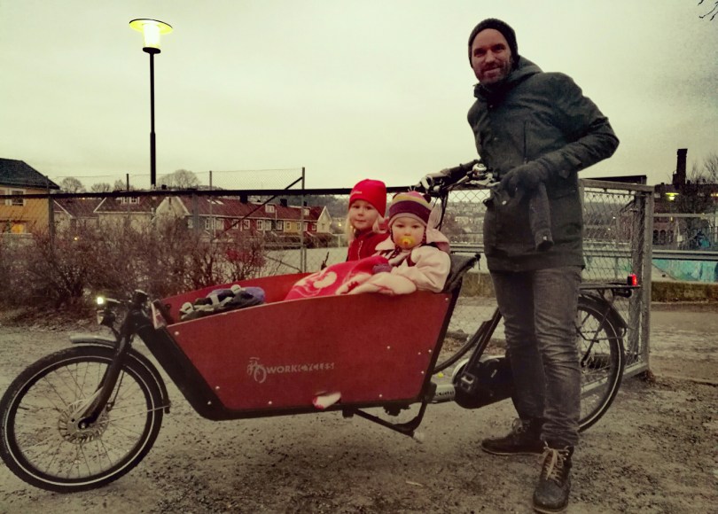 I fjor våres var vi en av de heldige familiene som fikk 5000.- kroner i støtte fra byrådet for å kjøpe en slik sykkel. Pengene kom godt med. For med to små barn som skal leveres i barnehage hver dag, falt valget fort på en transportsykkel av høy kvalitet. Med en prislapp på 40,000 er ikke Workcycles noe enhver vil unne seg. Men etter å ha flyttet ut av sentrum, ville alternativet for vår del vært å kjøpe bil. Det slipper vi nå. Elsykkelen fungerer utmerket og jeg bruker elsykkelen til jobb og til barnehage hver dag, sommer som vinter. Så elsykkelpolitikken fungerer altså! I hvert fall på oss.