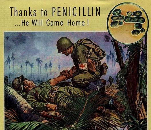 Da funnet ble publisert var krigen allerede brutt ut. De første forsøkene på menesker ble derfor utført midt under blitz-krigen over London. Å produsere i krigsherjede England var vanskelig og det var til slutt amerikanerne som kom i gang med storskala produksjon, godt hjulpet av Florey, Chain og Heatley. Fire år seinere hadde amerikanske soldater med seg penicillin da de invaderte Normandie. Legevitenskapen hadde fått en mirakelmedisin som skulle legge grunnlaget for en helt ny ære innen medisin og kirurgi, og farmasiindustrien hadde fått et middel som gjorde at den vokste inn i himmelen. Nazistene klarne nesten å knabbe penicillinet foran nesen på britene, men det kan du lese mer om i boken min.