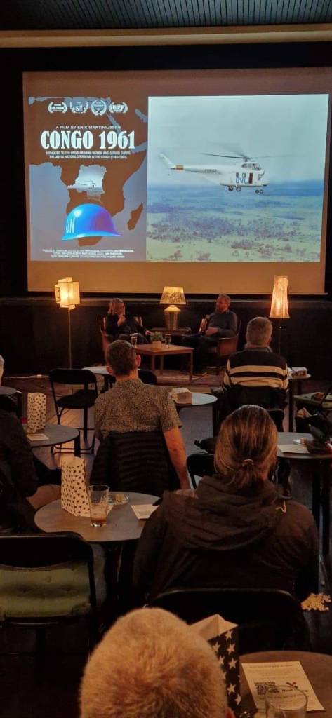 Fullt hus da Cinemateket i Bergen satte opp Kongoveteranene den 15. sept. På forhånd hadde Bergens Tidende et flott oppslag om filmen, om Kongo-operasjonen og den modige norske piloten Bjarne Hovden som i september 1961 fløy inn forsyninger til en omringet irsk, FN-tropp under konstant beskytning.